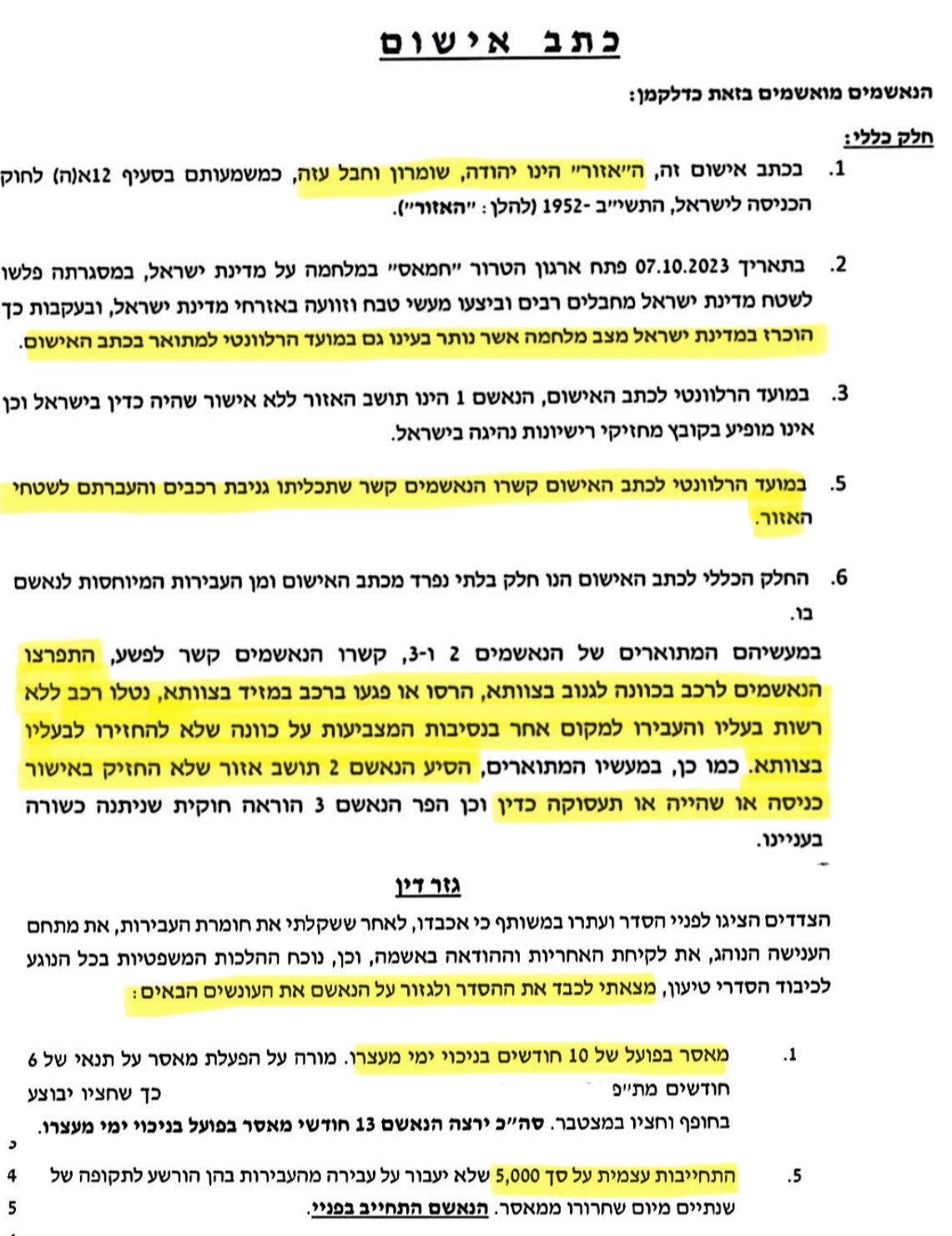 אישומים בגין פריצה וחבלה ברכב, גניבת רכב והסעת תושב זר השוהה שלא כדין בתקופת מלחמה